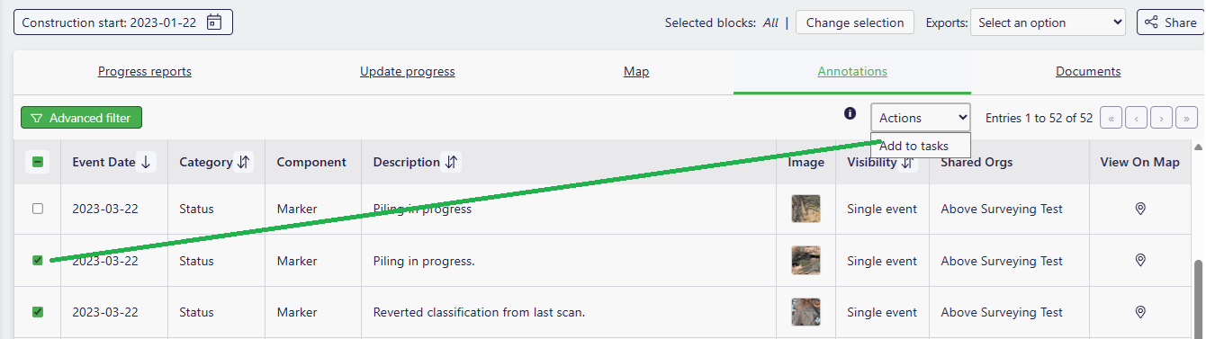 You can add multiple annotations to a task list by selecting or multi-selecting and using the Actions dropdown to add to tasks