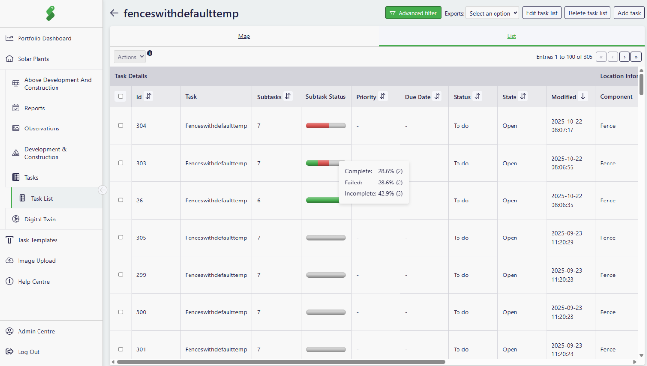Subtasks normally would be set up in the SolarGain portal and used when on site, using SolarGain mobile. However, the subtasks can also be marked off in the portal, if required.