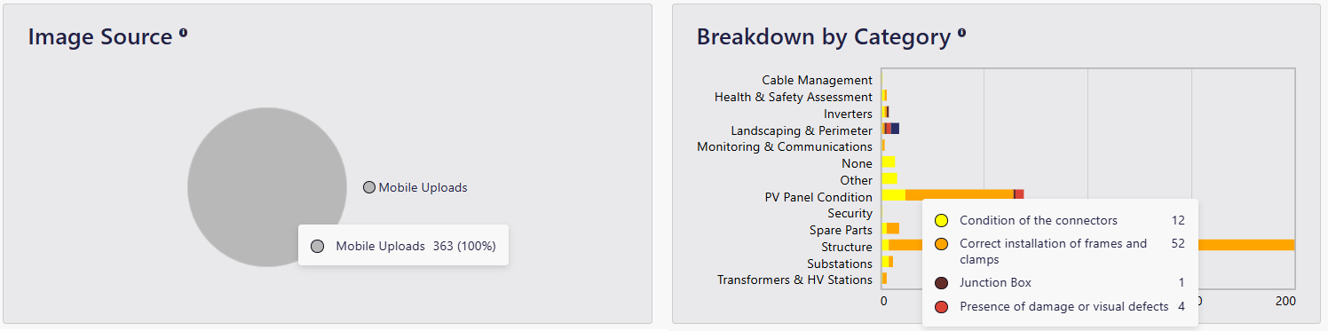 - Image source - This pie chart displays where images came from (for example, SolarGain Mobile, portal uploads, or autonomous drone).