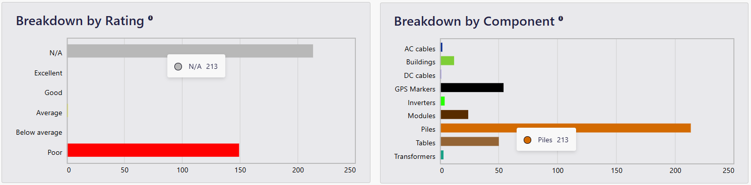 - Breakdown by rating - This chart displays the count of ratings of N/A, Poor, Below Average, Average, Good, Excellent