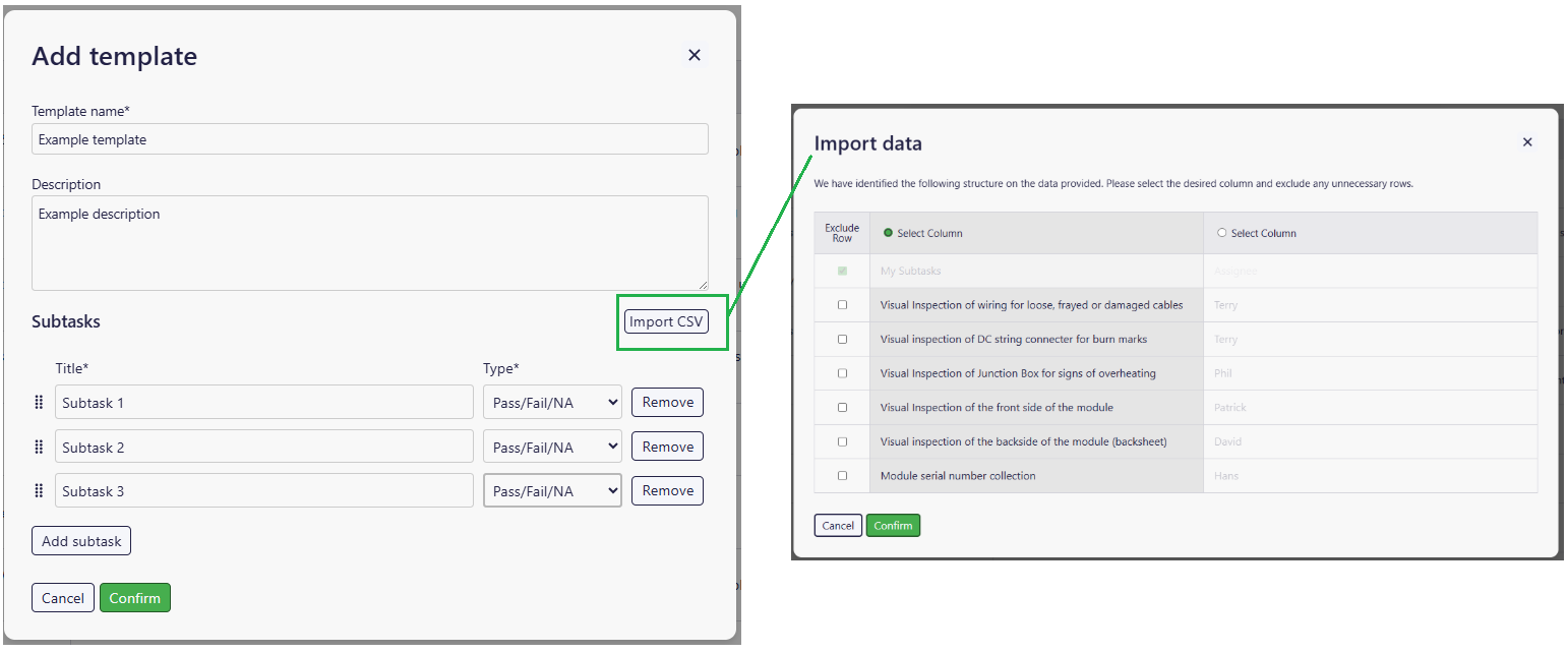 The imported data will appear after any manually added subtasks. Please note: This functionality works for new templates only.