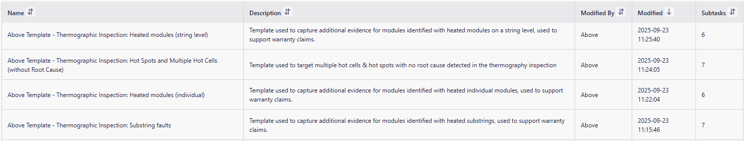 Please watch this video to see a step-by-step guide on creating task templates. In this video, you’ll learn how to create and digitalize PPIs, quality checks, and O&M checks directly in the Above Platform, ensuring they are available for your entire portfolio of sites to improve standardization and efficiency: